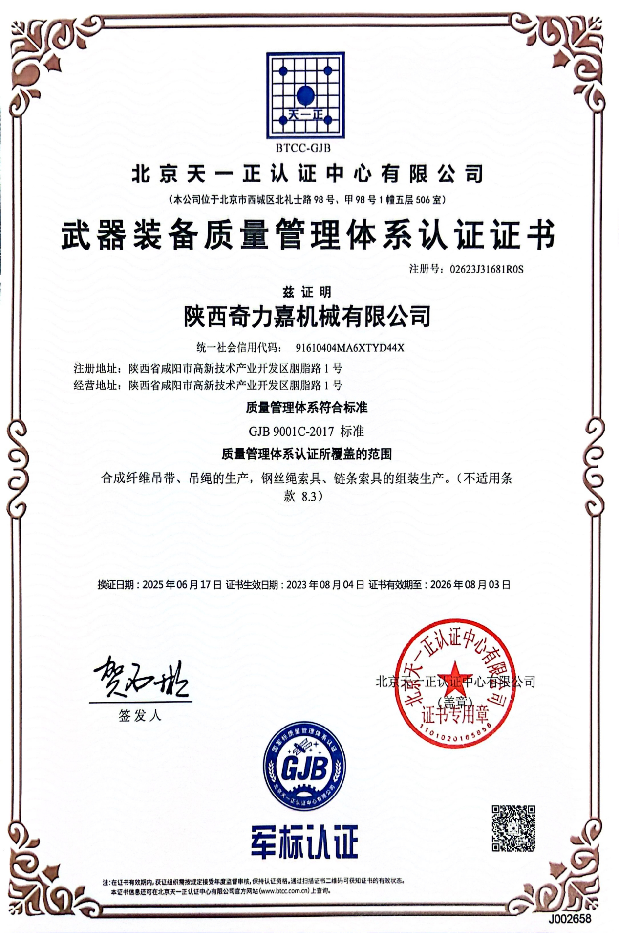 奇力嘉(原歐瑞特)是一家集科研、設計、生產及銷售為一體的起重吊索具企業,公式擁有先進的生產設備,雄厚的技術力量,精湛的制造工藝,穩定齊全的質量檢測設備,生產合成纖維吊裝帶,鋼絲繩,鏈條,各種鋼坯夾具,卷板吊具,電動夾鉗和索具配件,是目前國內生產同類產品規格齊全的廠家之一。我們將秉承團結、誠信、敬業、發展的精神,以更新更強的技術,更加精湛的業務以及更加完善的經營理念,全心全意為您服務。用我誠信,換您放心,讓我們共同創造一個輕便、快捷的吊裝環境。